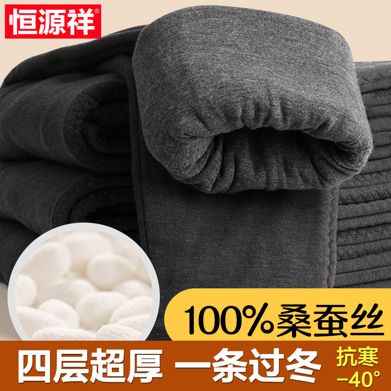 恒源祥桑蚕丝棉裤男士冬季东北加绒加厚高腰保暖裤女士打底裤绒裤