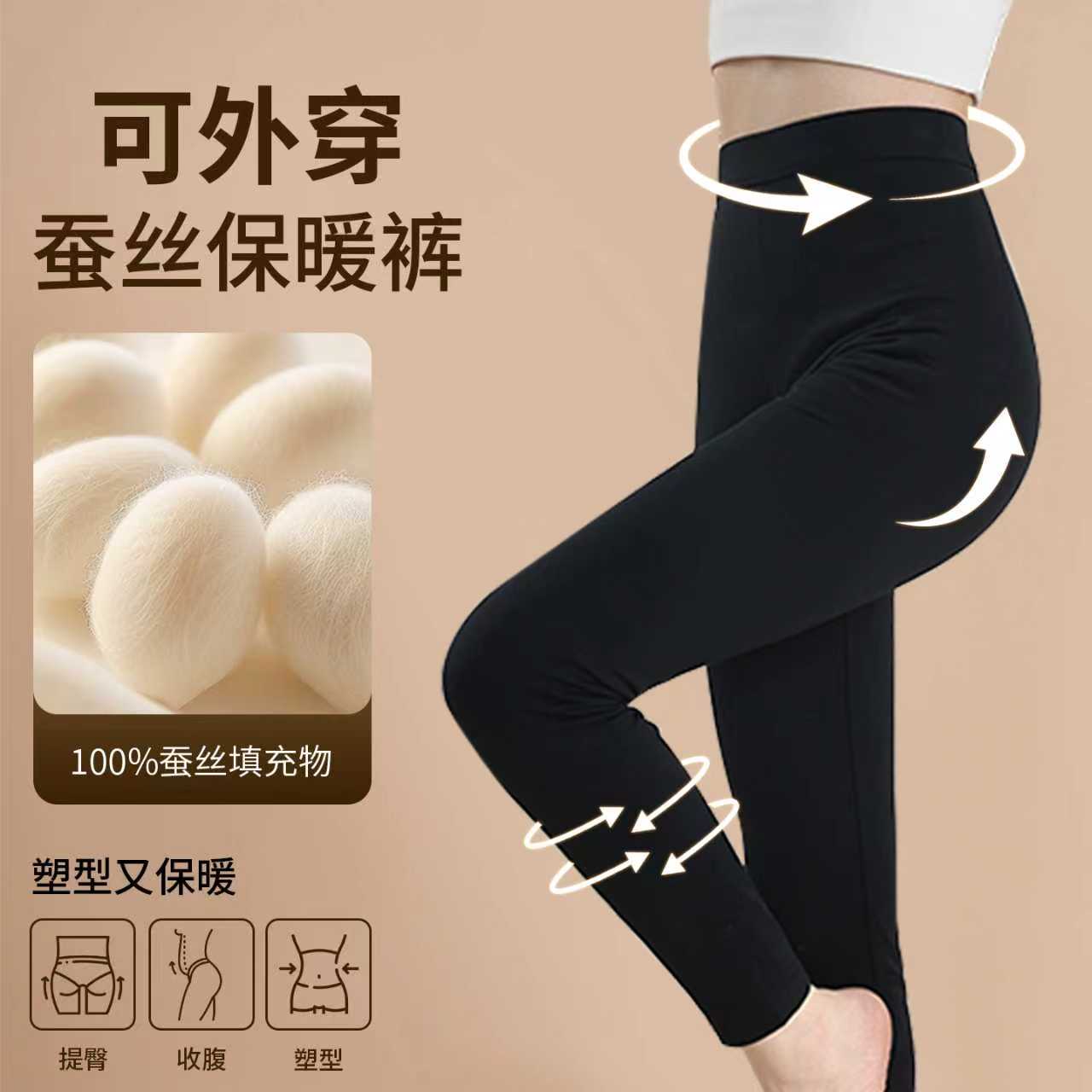 桑蚕丝棉裤女高腰弹力打底保暖裤冬学生内穿贴身加厚显瘦防寒秋裤