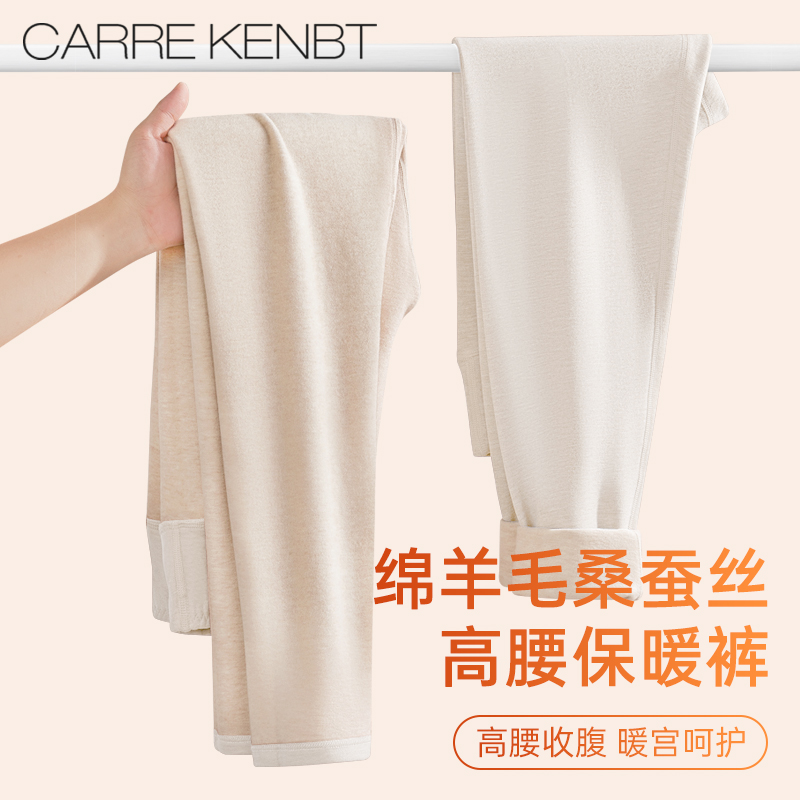 CarreKenbt高腰保暖裤女桑蚕丝加厚发热德绒棉裤冬季羊毛打底睡裤