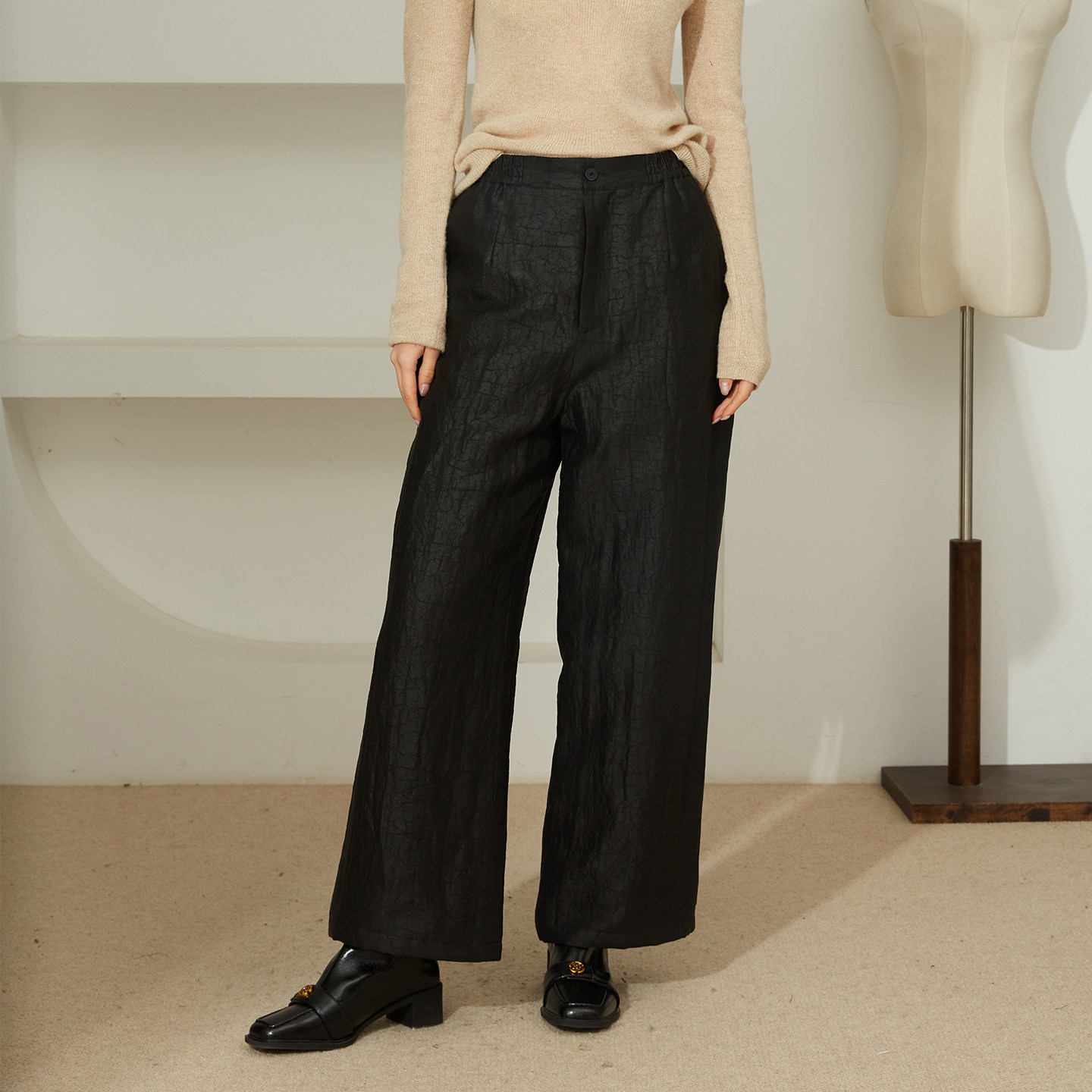 特惠 填充100%桑蚕丝龟裂纹香云纱真丝棉裤半松紧腰加厚休闲裤