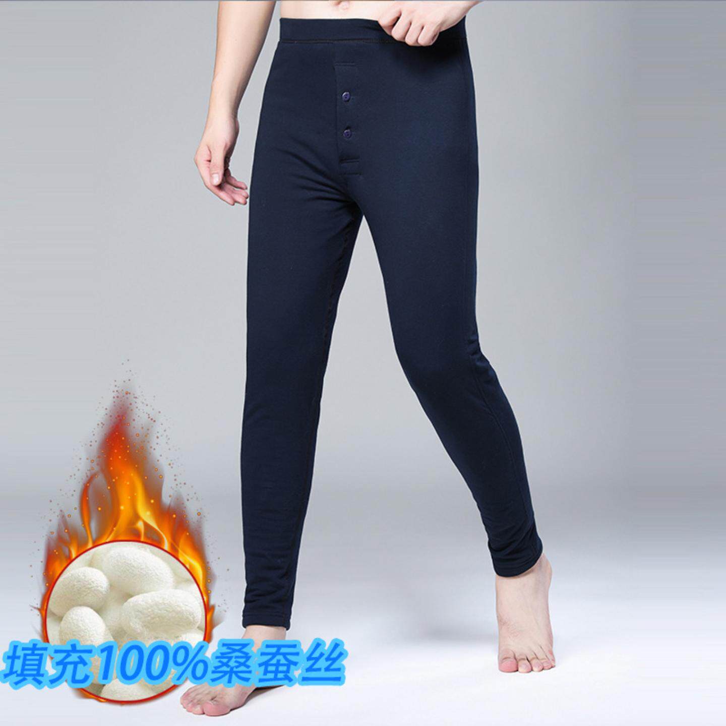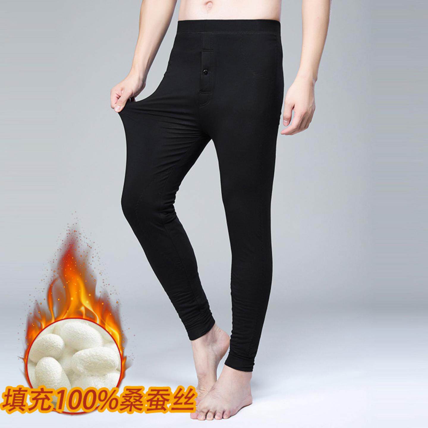 100%桑蚕丝填充保暖裤男士羊毛棉裤加厚冬季高腰女修身打底秋裤薄
