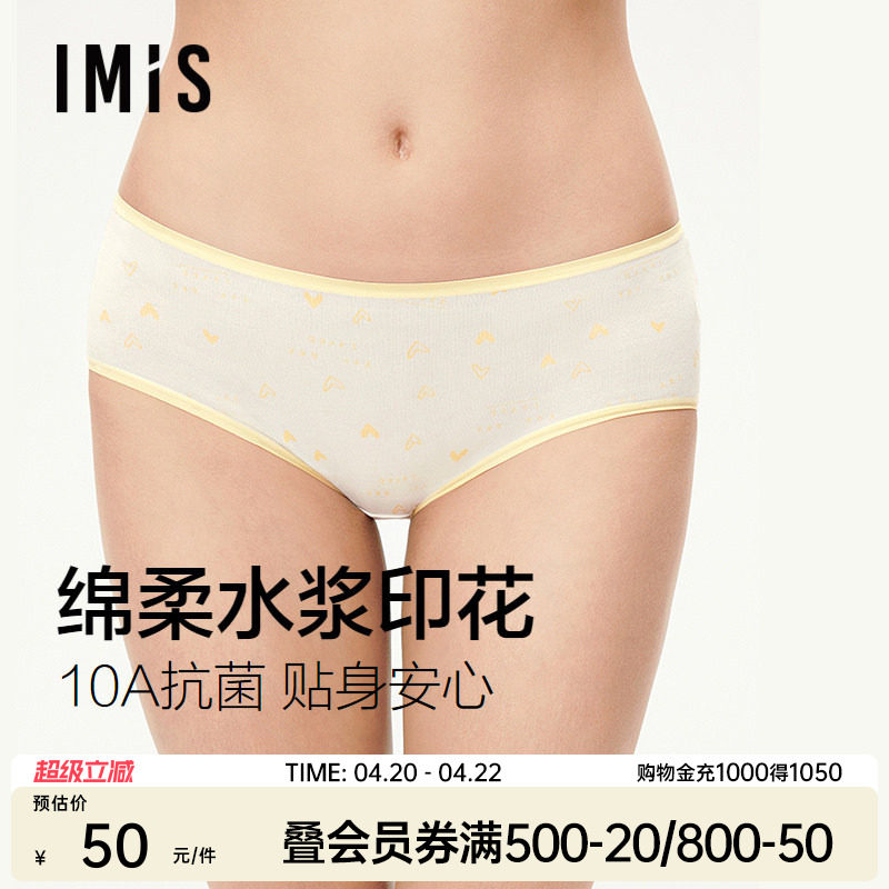 爱美丽棉棉裤26新款爱心印花10A抗菌桑蚕丝底裆内裤女中腰平角裤
