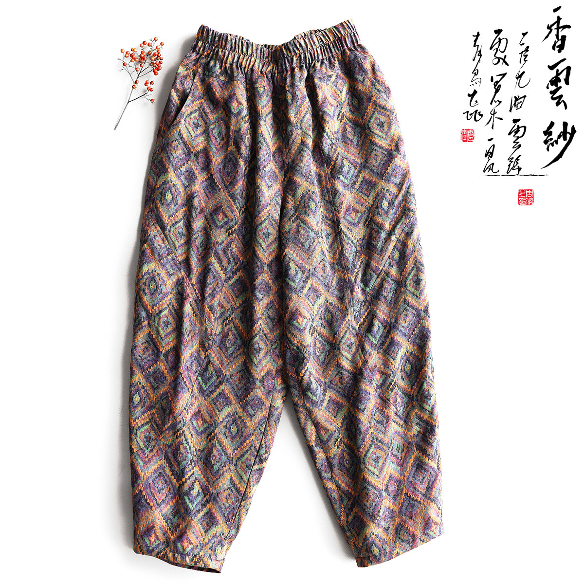 云澍原创花罗香云纱新中式松紧腰宽松长裤子真丝桑蚕丝复古棉裤女