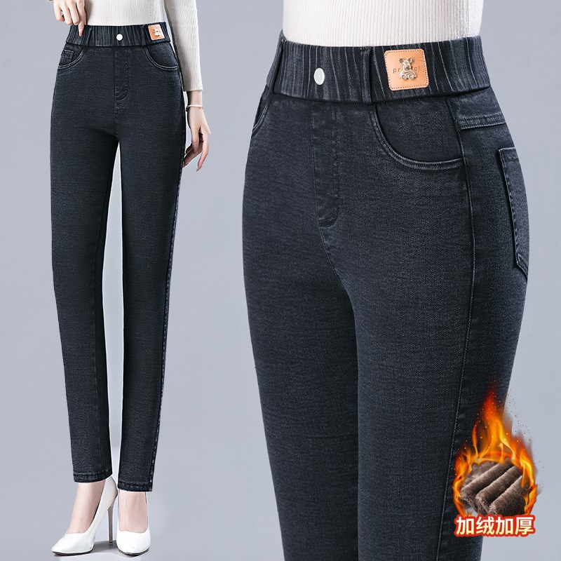 高腰牛仔裤女打底裤外穿2024秋冬季新款加绒加厚修身铅笔小脚裤