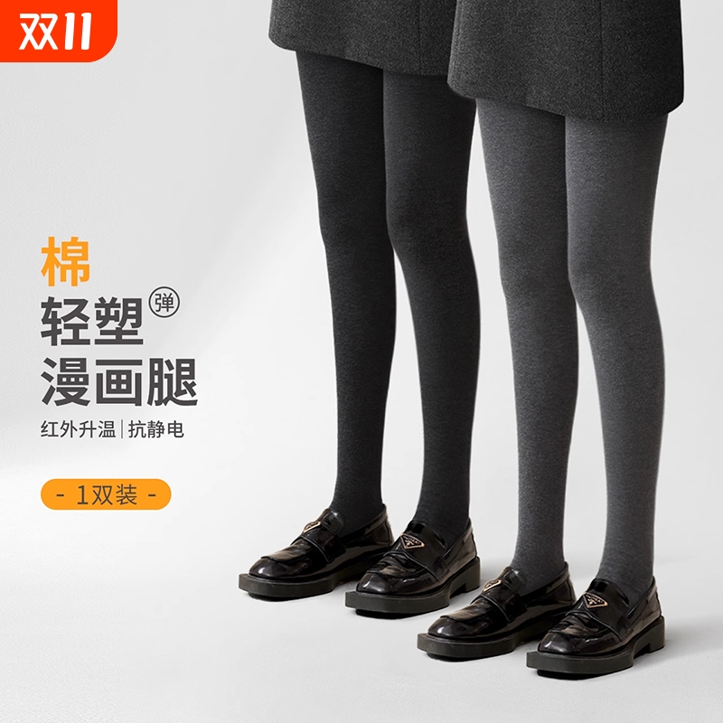 显瘦连裤袜子女款打底裤外穿微压防滑不掉档黑灰色加绒保暖长筒袜