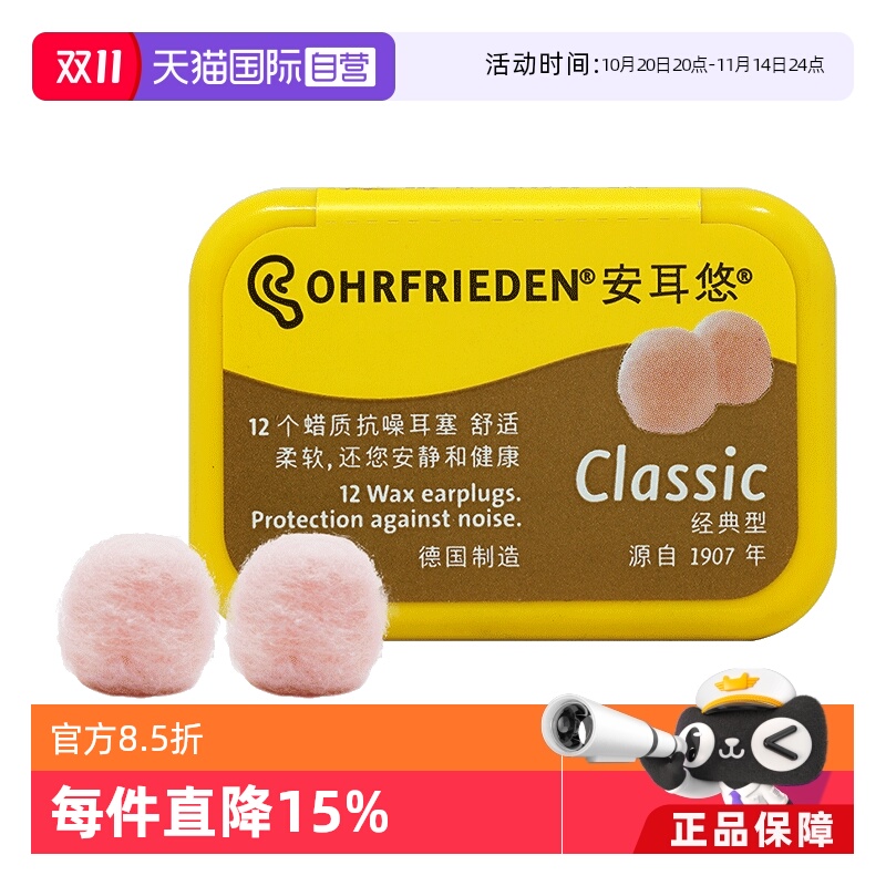 【自营】Ohrfrieden安耳悠蜡丸睡眠耳塞防噪音防打呼噜隔音降噪