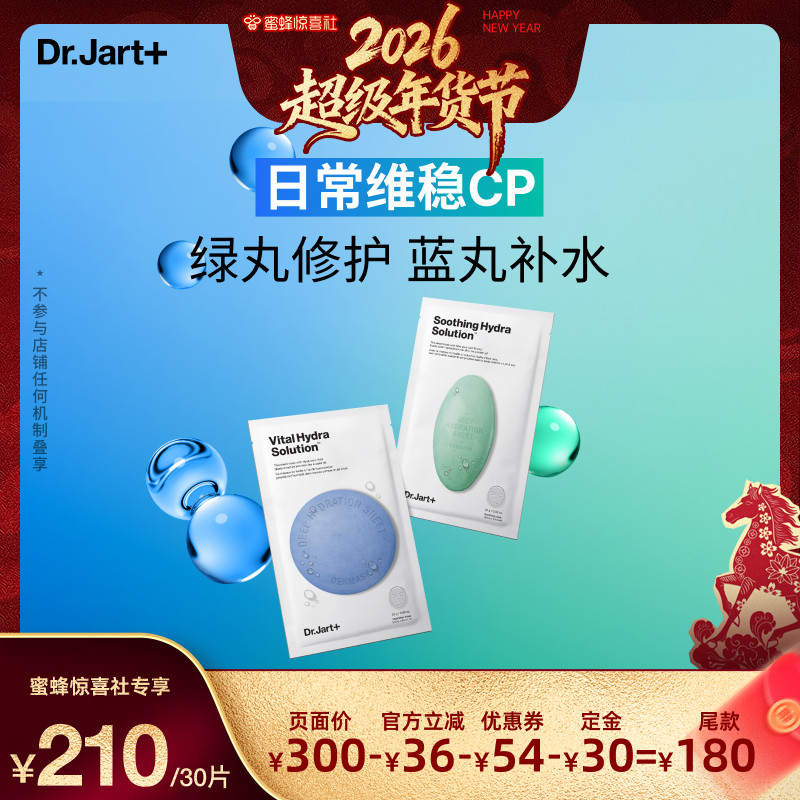 临期特价韩国Dr.Jart+蒂佳婷蓝丸绿丸补水面膜保湿修护水润正品
