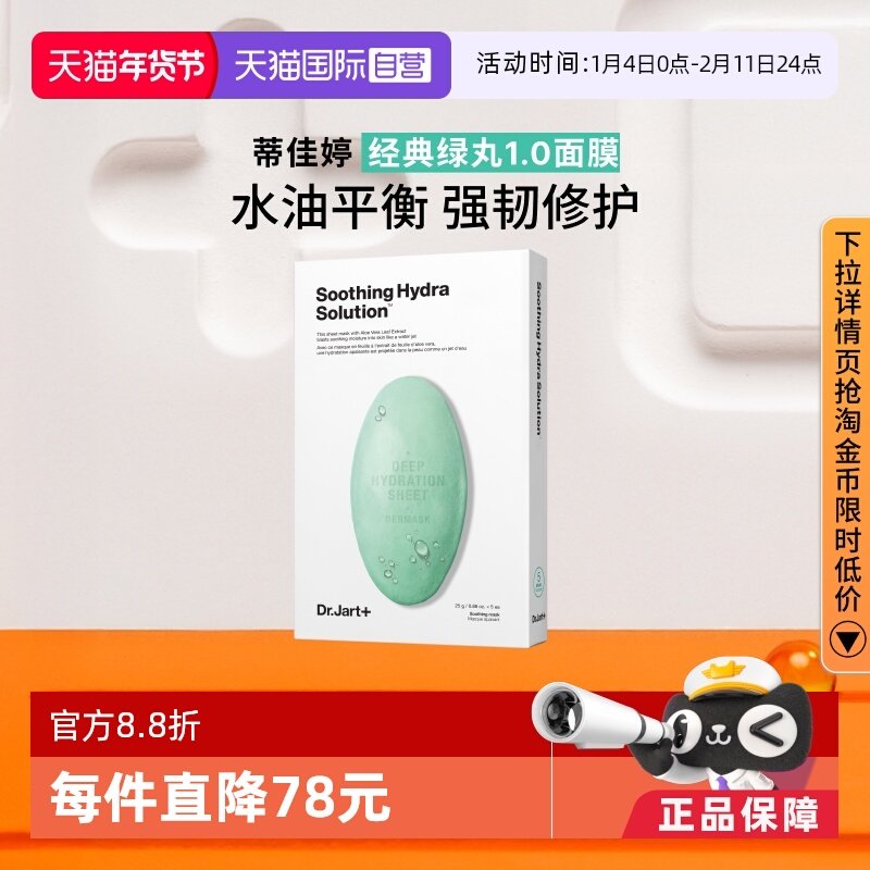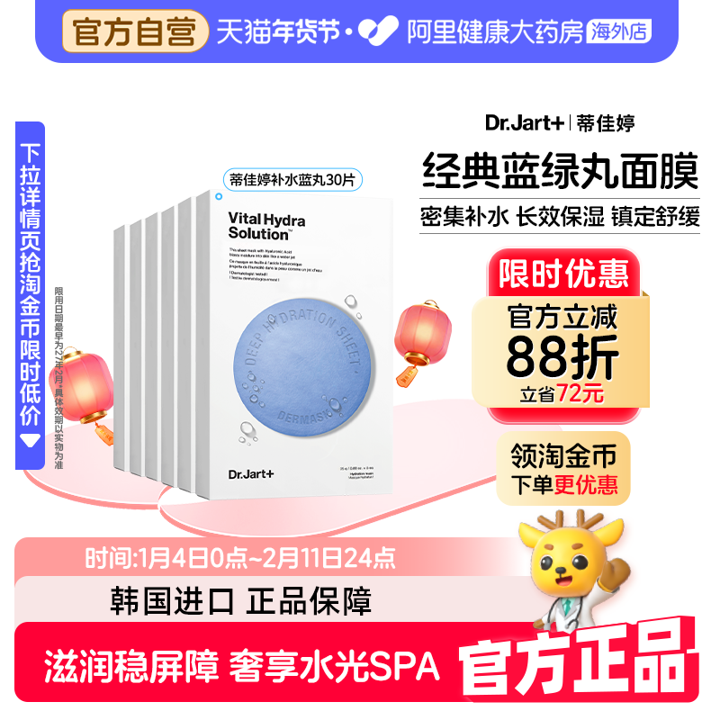 蒂佳婷面膜补水保湿女蓝色药丸面膜绿胶囊清洁毛孔韩国DrJart正品