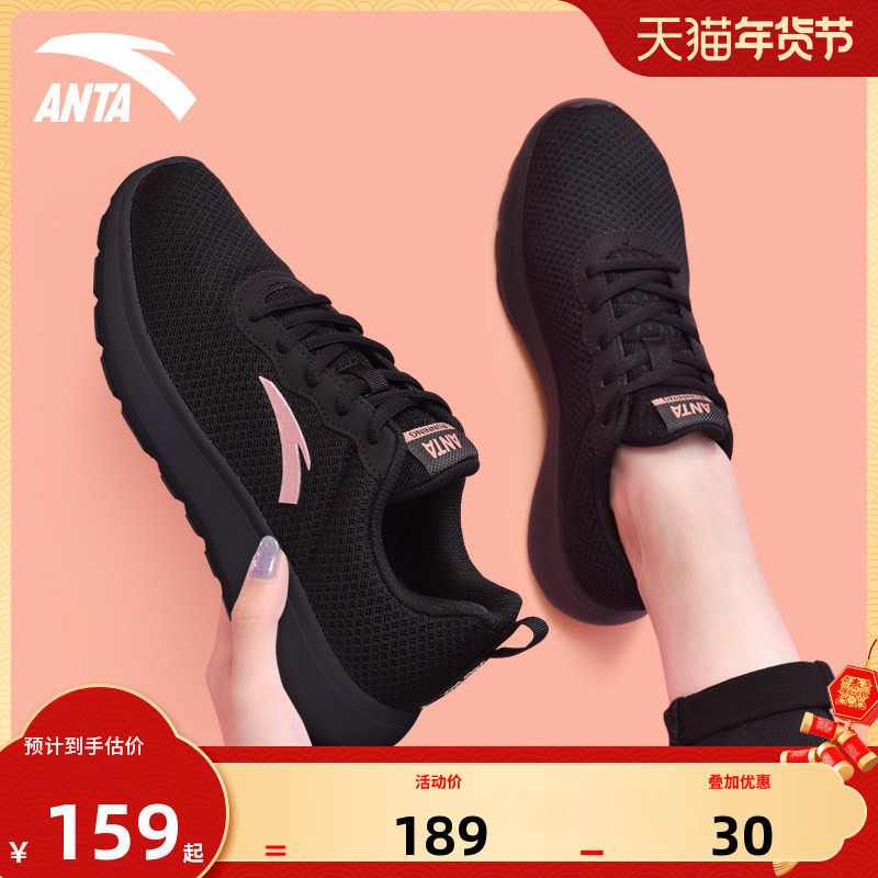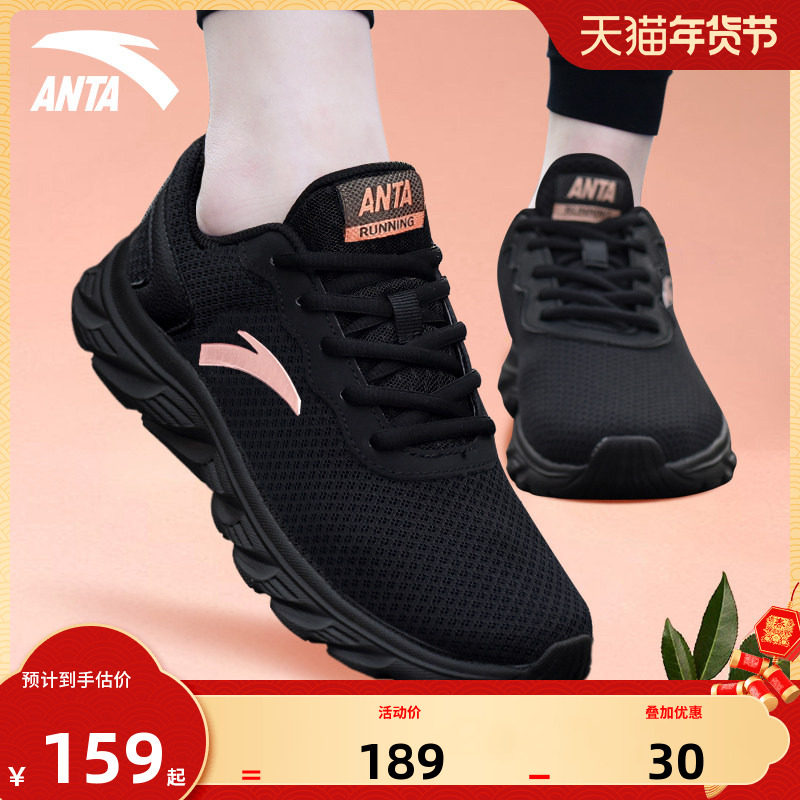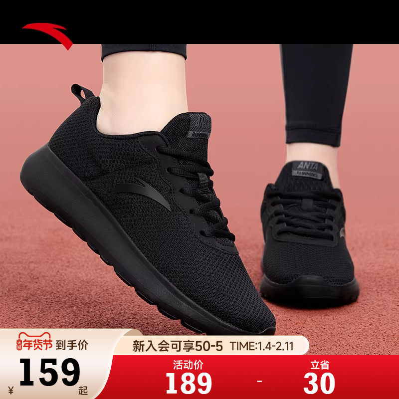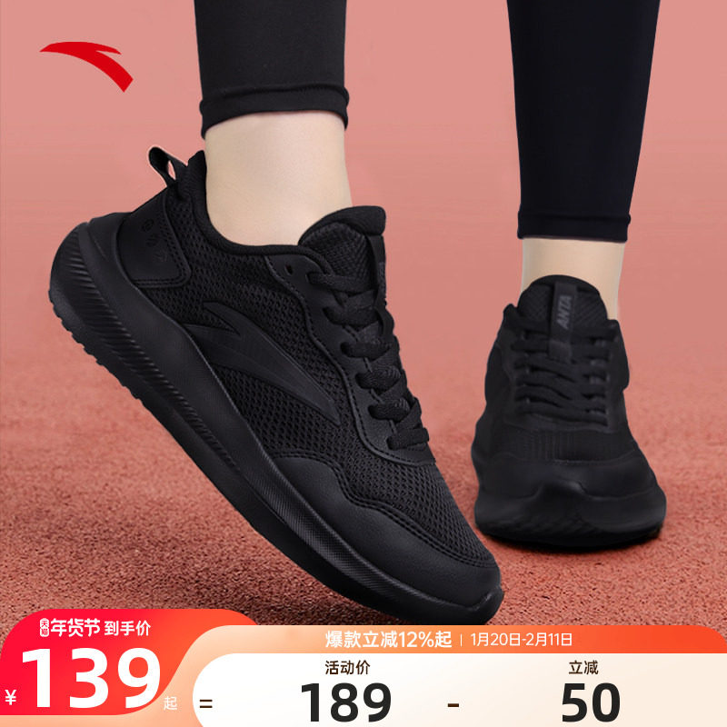 安踏女鞋黑色运动鞋女2026新款旗舰店正品春季轻便网面妈妈跑步鞋