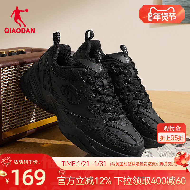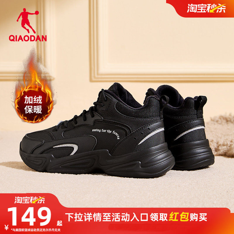 飞羽乔丹皮面防水保暖休闲鞋女2025冬季百搭黑色运动鞋女生老爹鞋