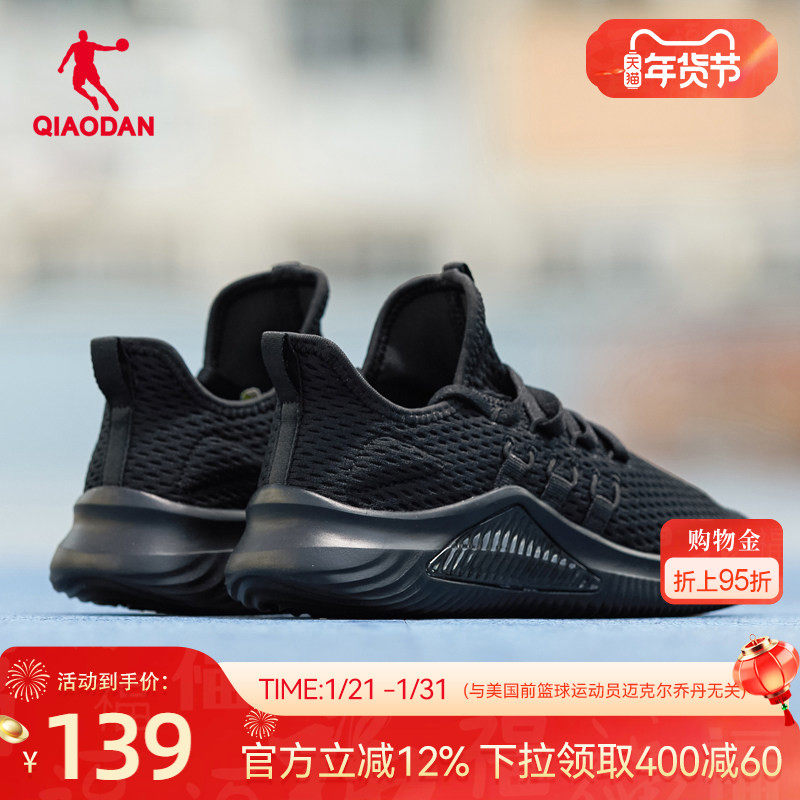 乔丹全黑色运动鞋女超轻2026春季轻便减震软底网面透气跑步鞋学生