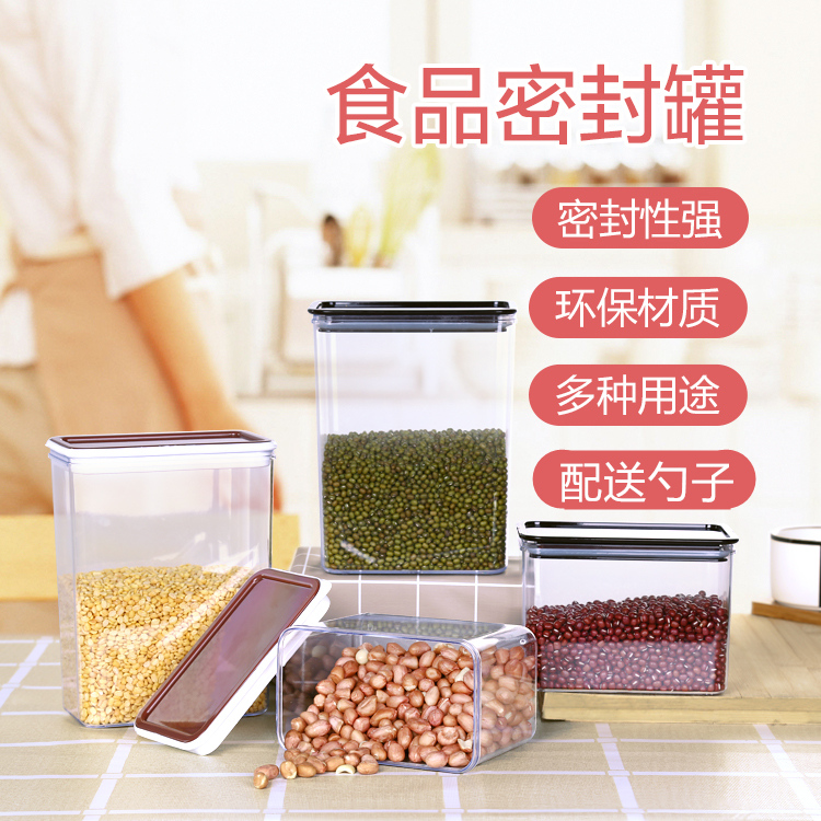 方形按压式储物罐密封罐厨房五谷杂粮塑料糖果罐果粉盒透明收纳罐