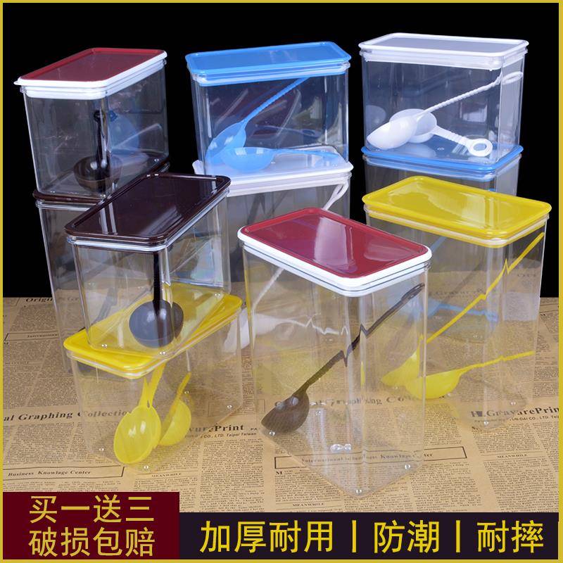 加厚奶茶果粉盒 塑料透明方形密封罐 商用咖啡粉专用方豆桶大小号