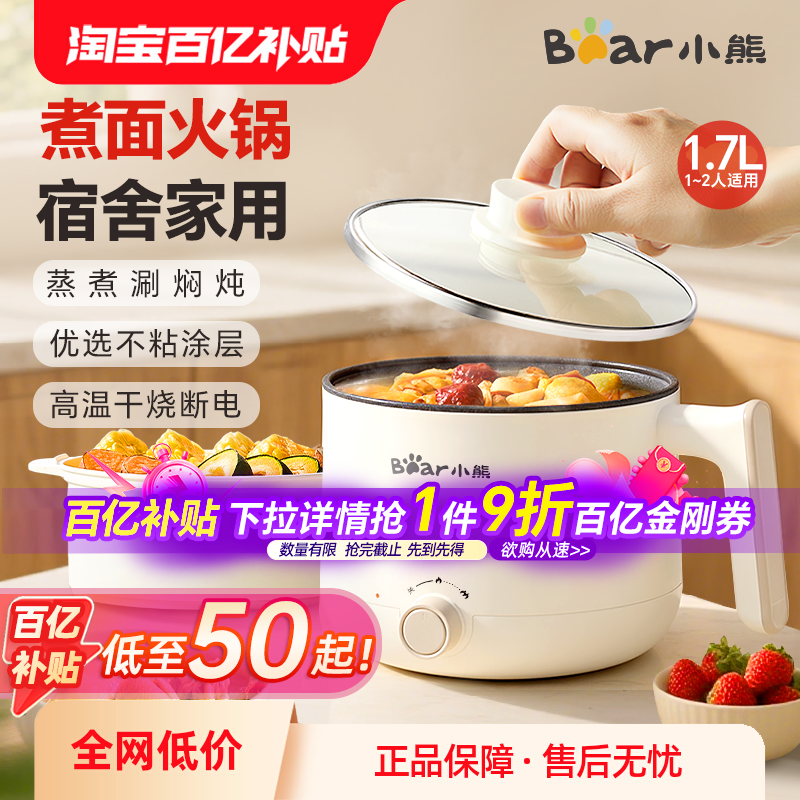 小熊电煮锅小型多功能蒸煮一体宿舍泡面学生小电锅迷你火锅烹饪机