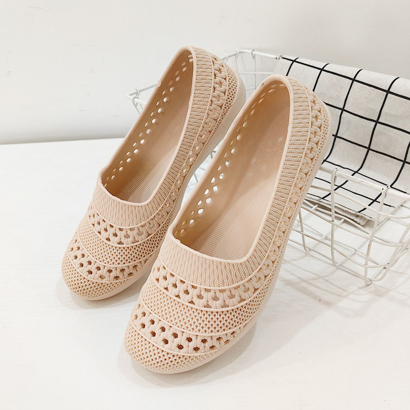 简约软底平底透气镂空女鞋孕妇妈妈凉鞋护士鞋白色夏季平跟洞洞鞋