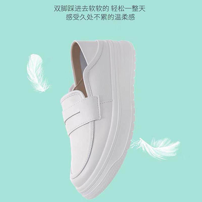 慕伊莱真皮小白护士鞋女四季软底白色透气厚底增高坡跟舒适不累脚