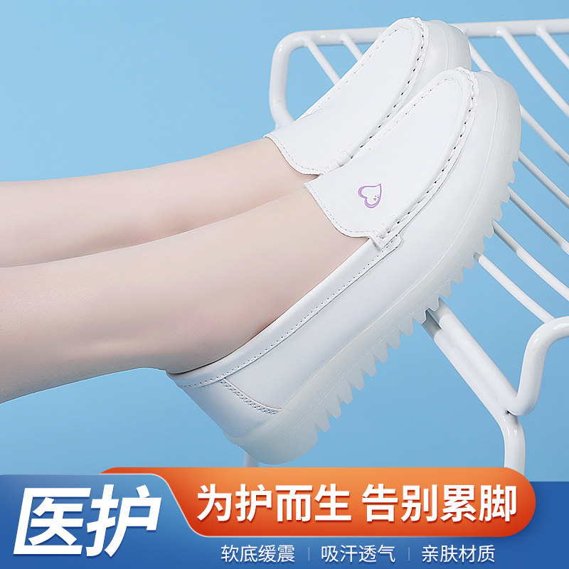 新款套脚女鞋护士鞋白色气垫软底不累脚医护鞋轻便舒适厚底小白鞋