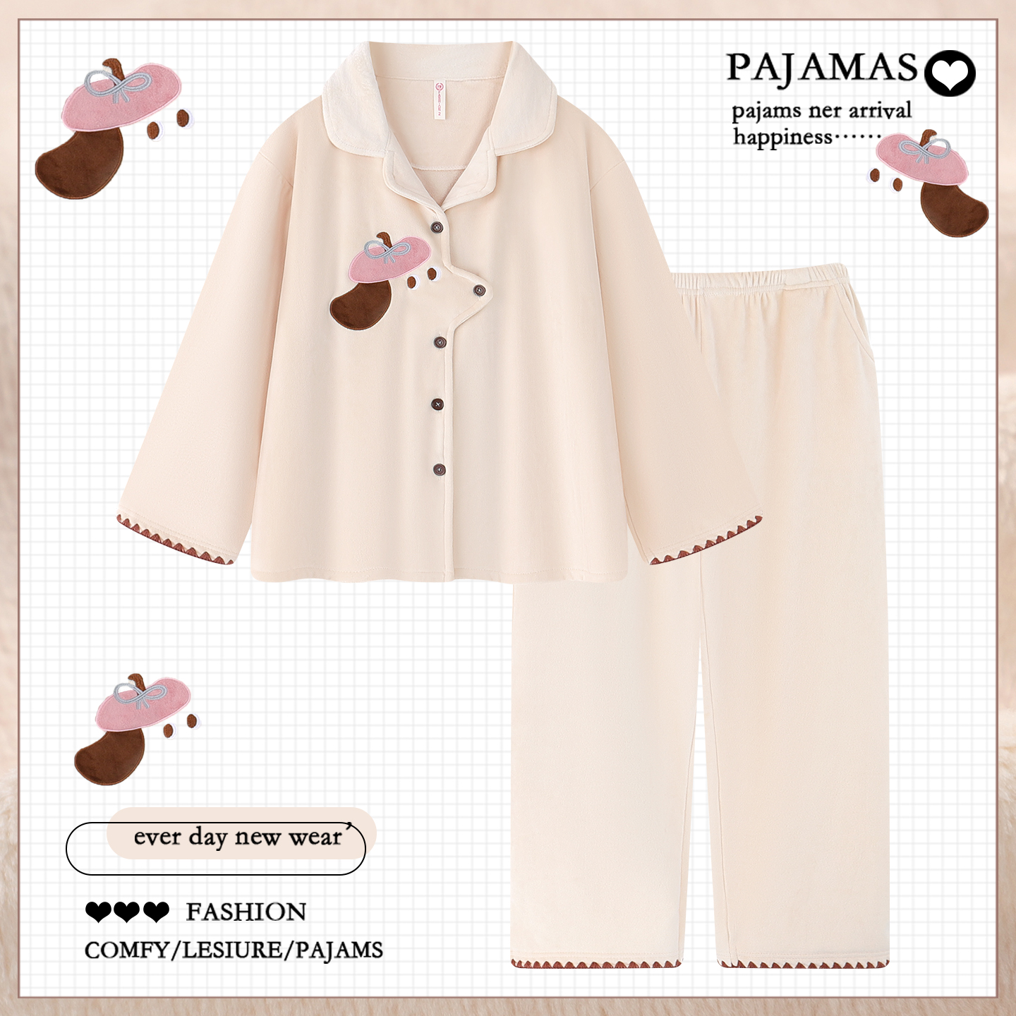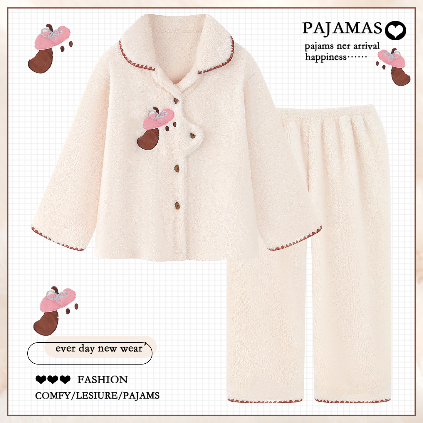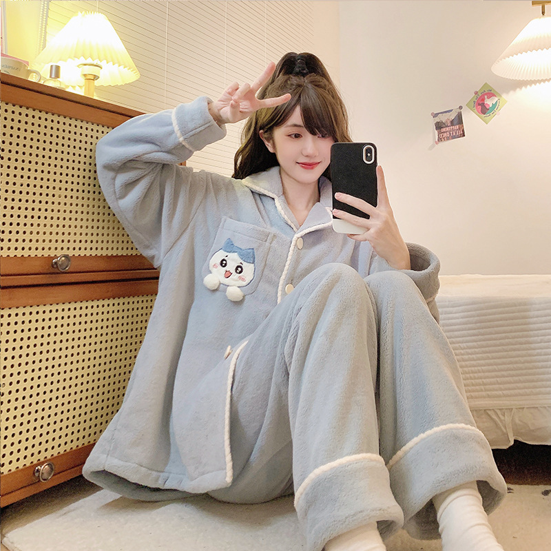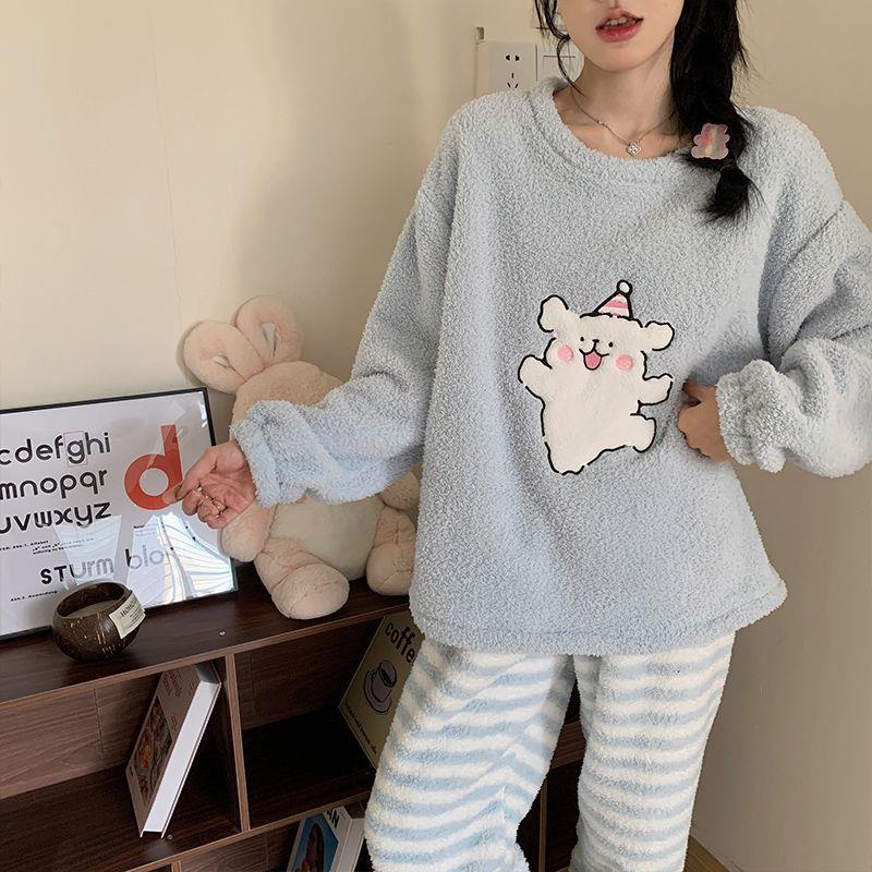 - 珊瑚绒加厚女套装