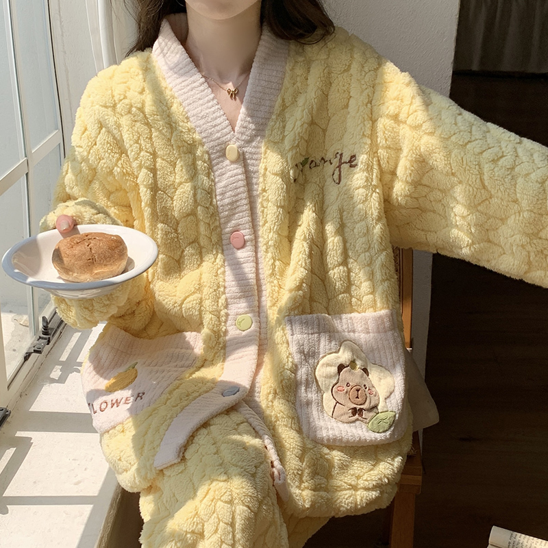 - 保暖珊瑚绒睡衣女