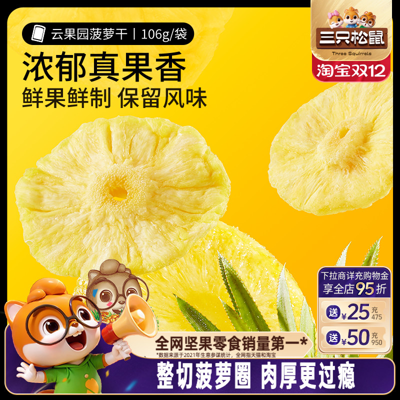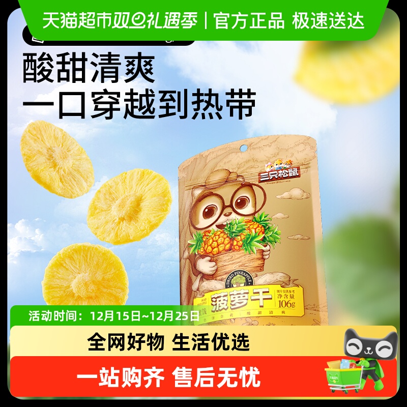 【满99减30】三只松鼠菠萝干60g零食水果干蜜饯果脯片小吃