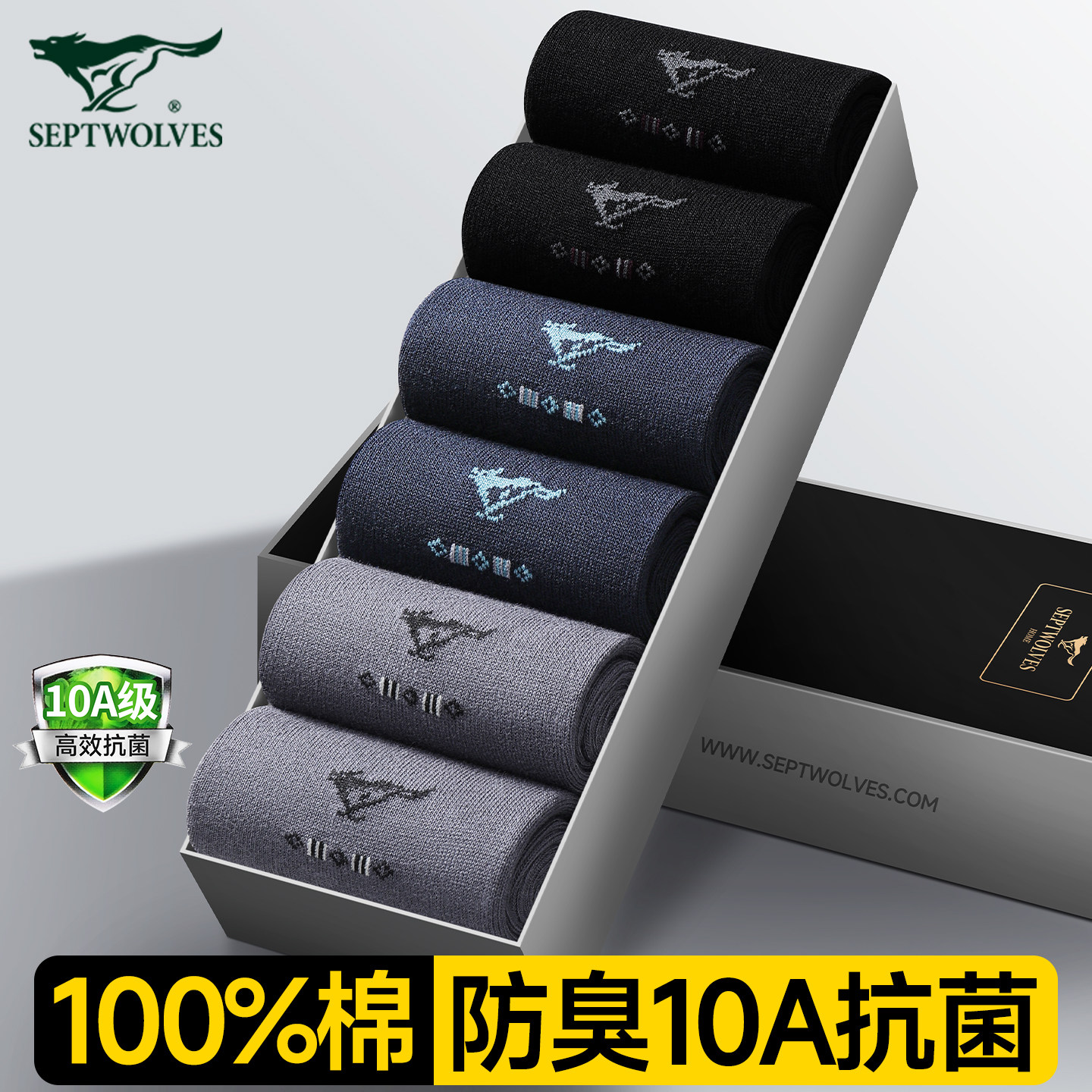 七匹狼袜子男士纯棉吸汗防臭全棉透气7a抗菌中筒袜黑色男款春夏季