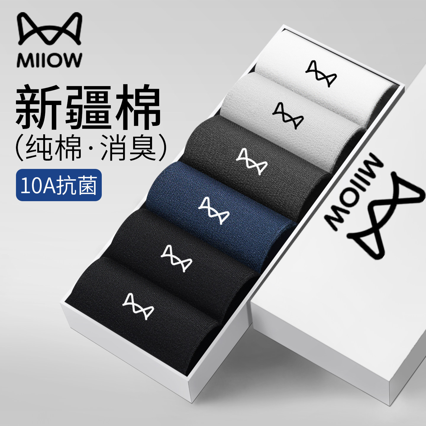 猫人袜子纯棉男士2026春吸汗防臭中筒袜秋新款青少年商务黑色长袜
