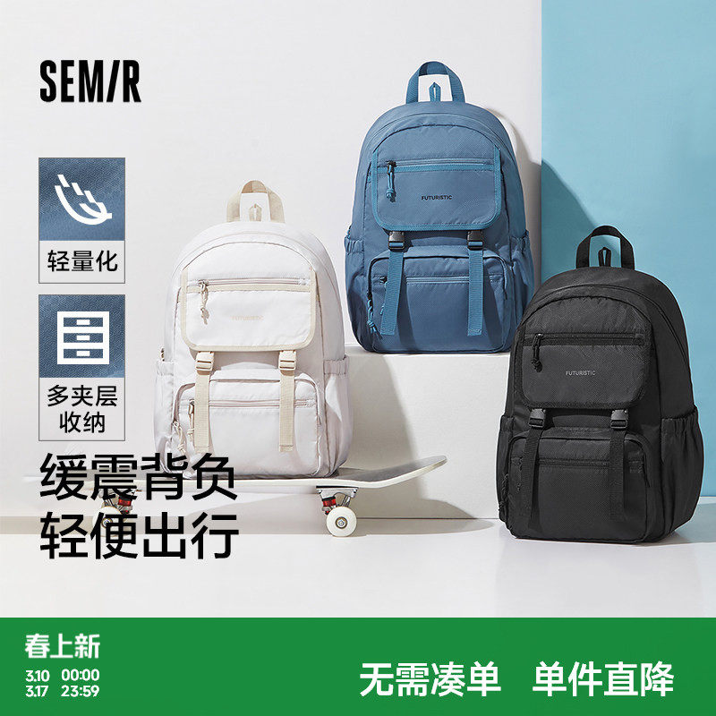 森马双肩包男2024新款轻便大容量电脑包书包肌理感情侣背包学院风