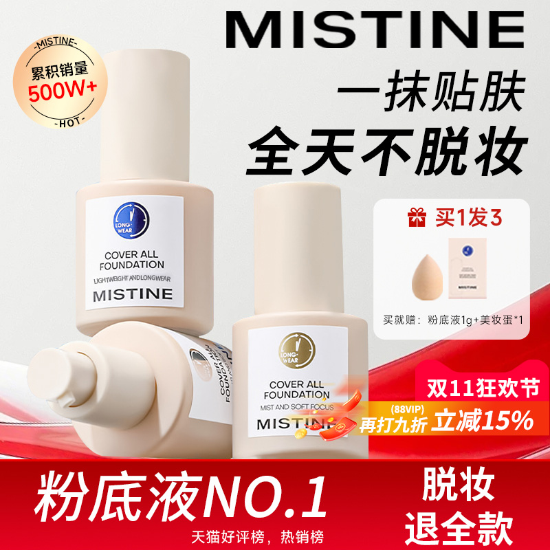 mistine粉底液持久不脱妆遮瑕保湿bb霜混油皮干皮nishu蜜丝婷正品