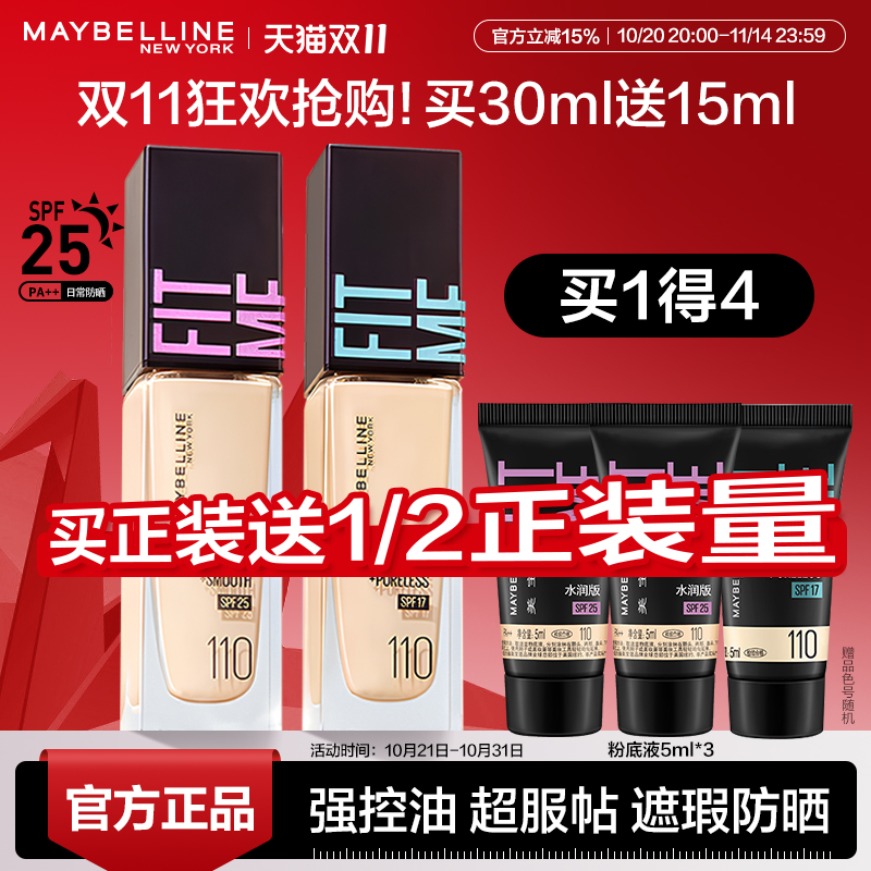 美宝莲fitme粉底液pro持久不易脱妆遮瑕保湿BB混油皮干皮品牌正品
