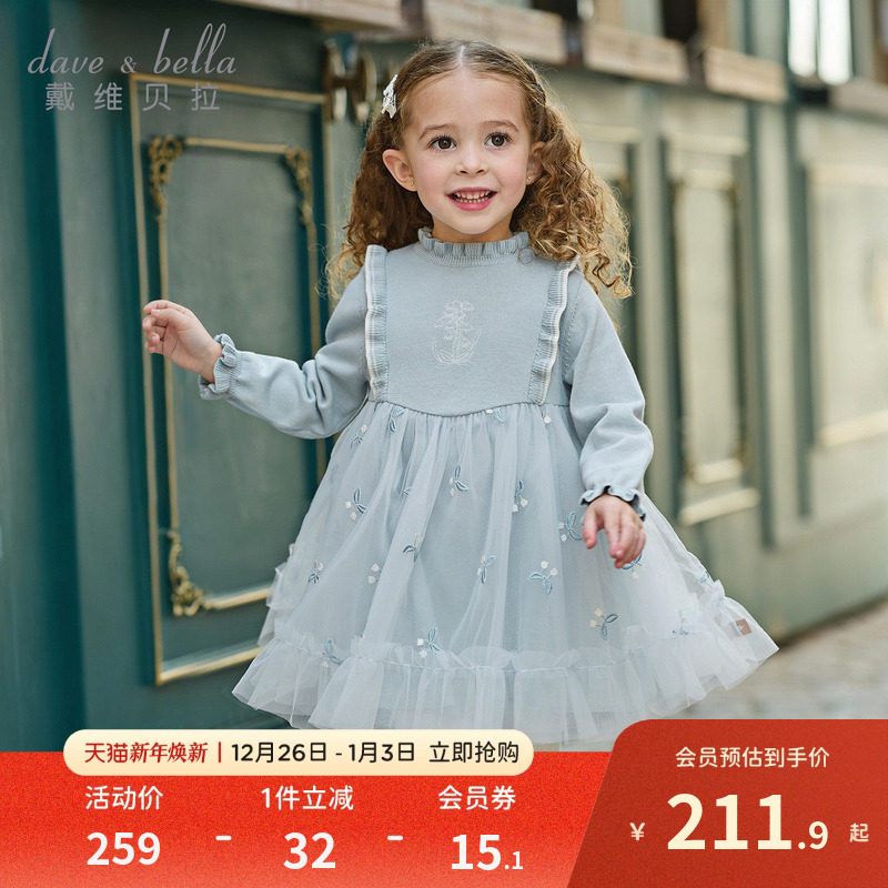 戴维贝拉女童毛衣连衣裙2026新款春装裙子宝宝网纱公主裙儿童A类