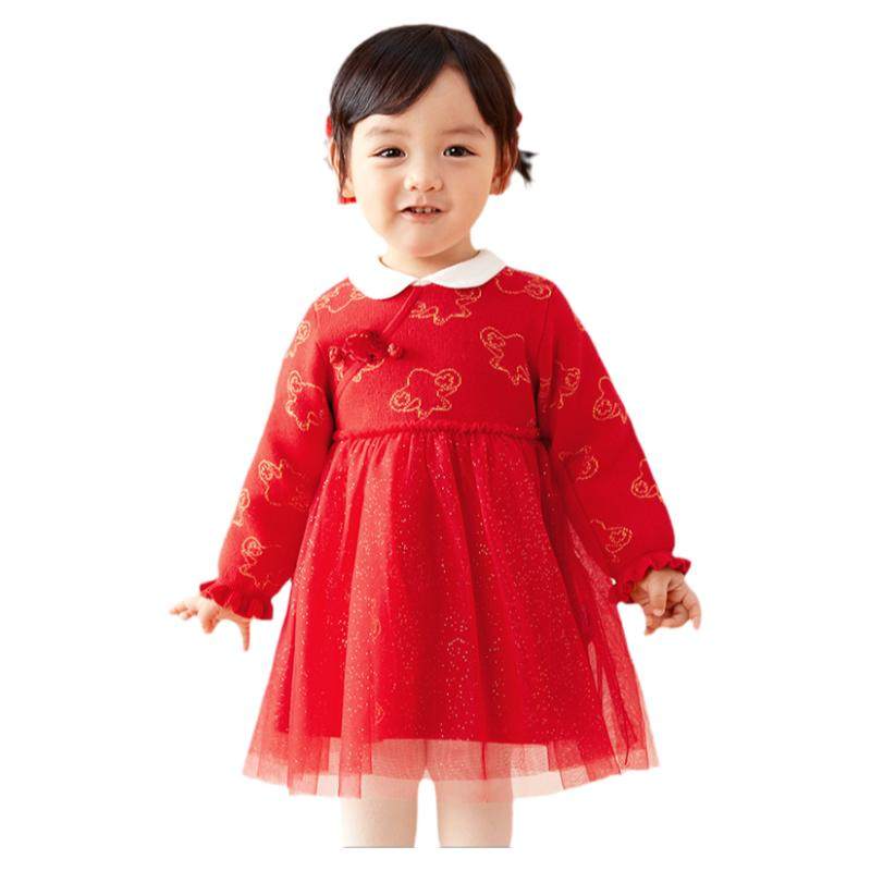 巴拉巴拉婴儿连衣裙女童宝宝新年红色裙子儿童2026春装新款童装小