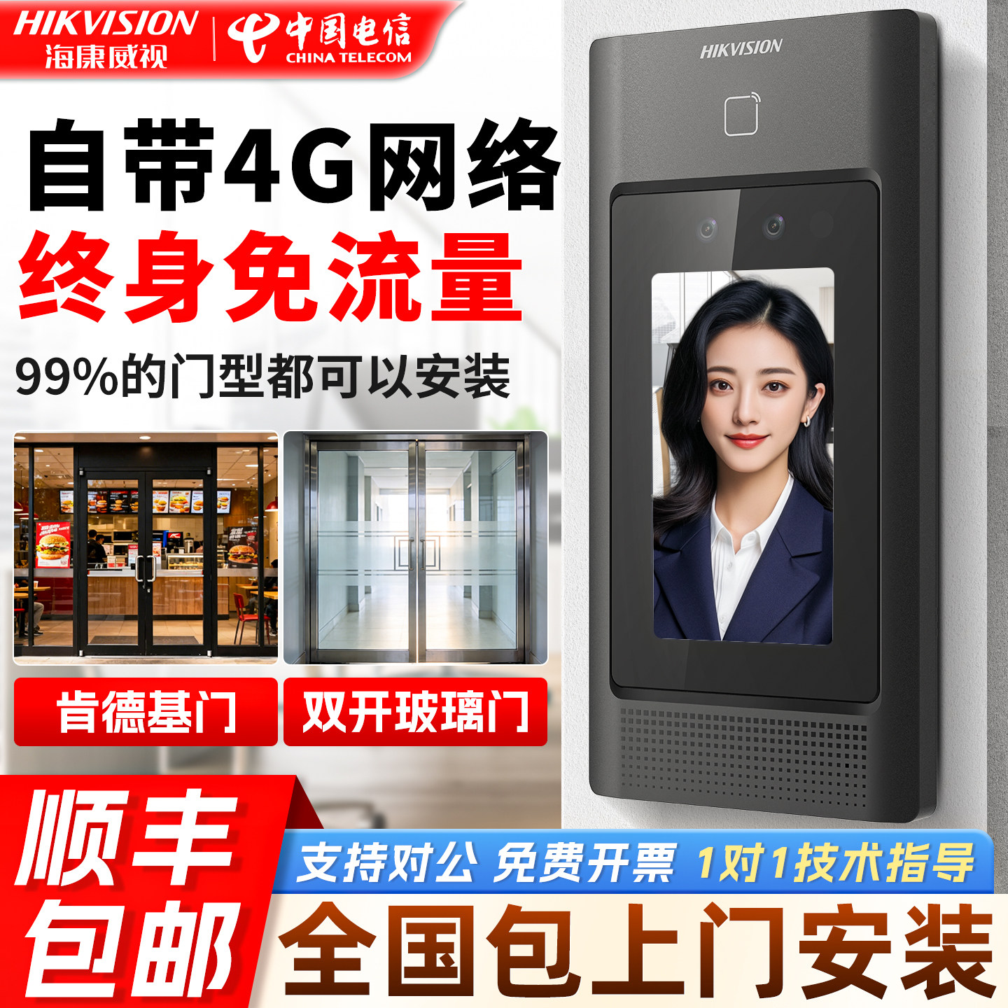 海康威视4G人脸考勤门禁一体机电磁锁门禁系统套装手机app远程开门门禁主机安装包玻璃铝合金小区铁门玻璃门