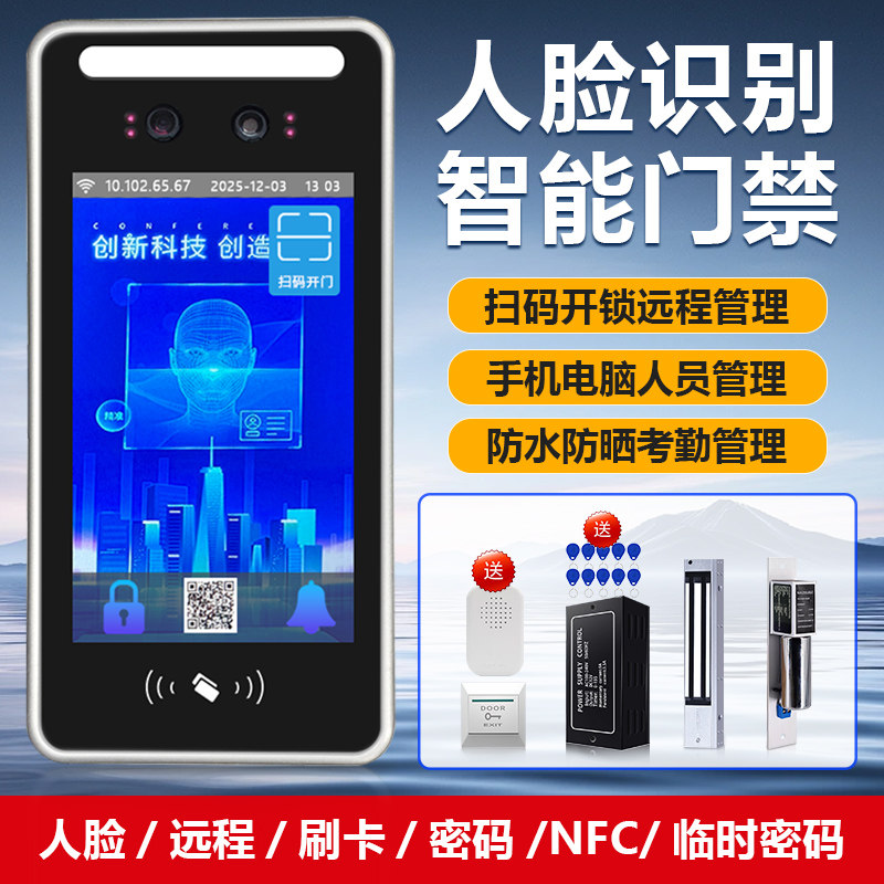 防水动态人脸识别门禁系统一体机刷脸刷卡密码玻璃门磁吸锁磁力锁