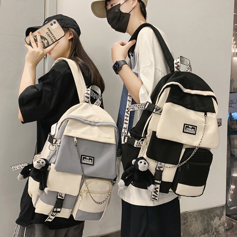 高颜值书包女日系ins高中生初中生背包男轻便电脑旅行链条双肩包