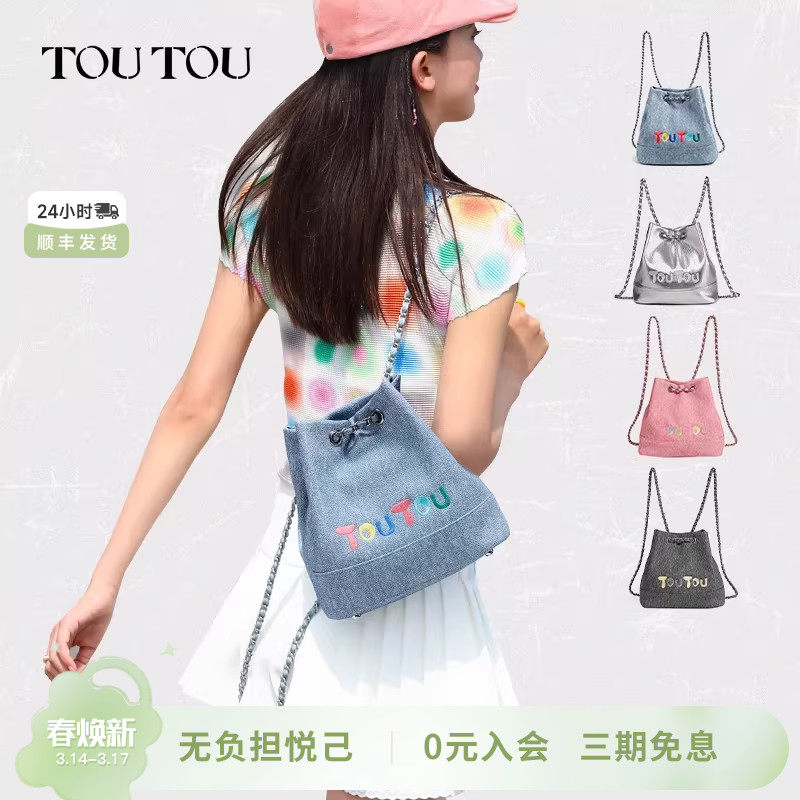 TOUTOU原创链条双肩包大学生通勤仿牛仔双肩背包旅游书包女单肩包