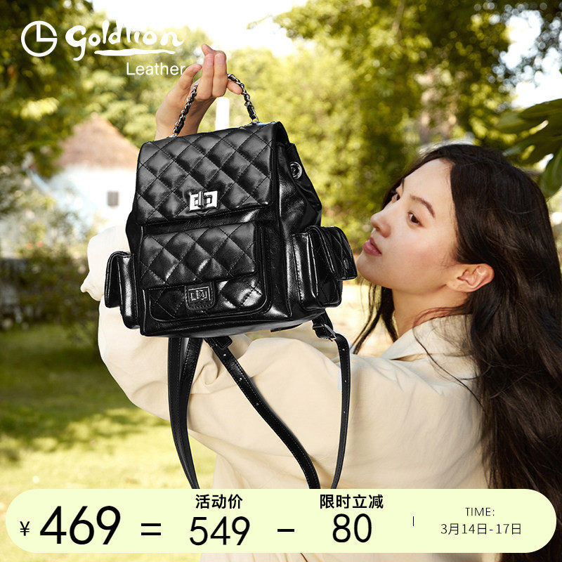 金利来真皮菱格链条双肩包女2026新款大容量休闲时尚百搭通勤背包