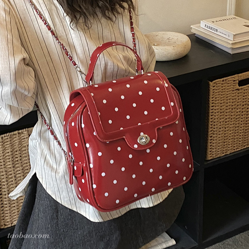 流行波点大容量包包2026新款时尚链条双肩包高级感通勤女式后背包