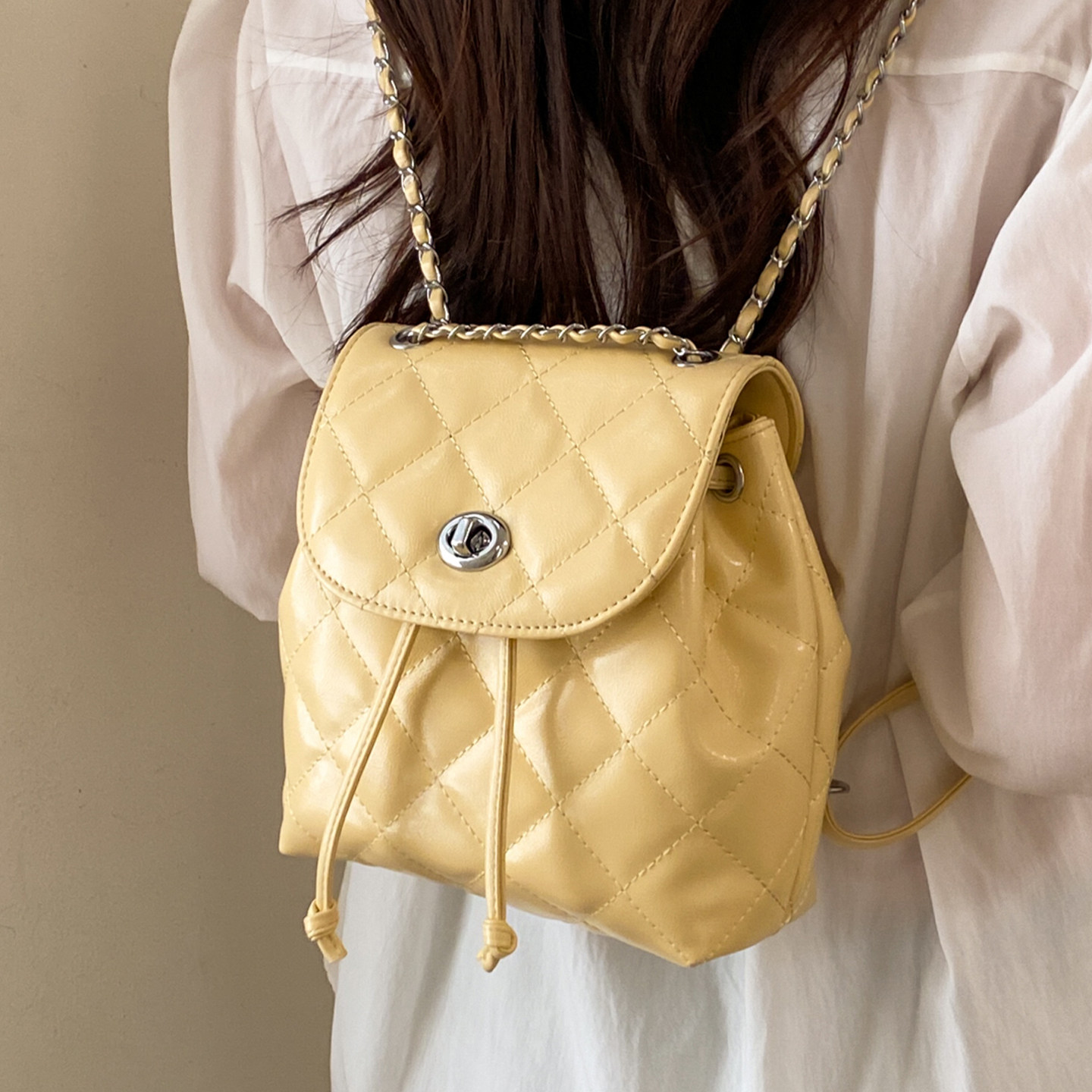 2026小香风mini菱格链条双肩包夏季新款可爱小背包简约百搭女生包