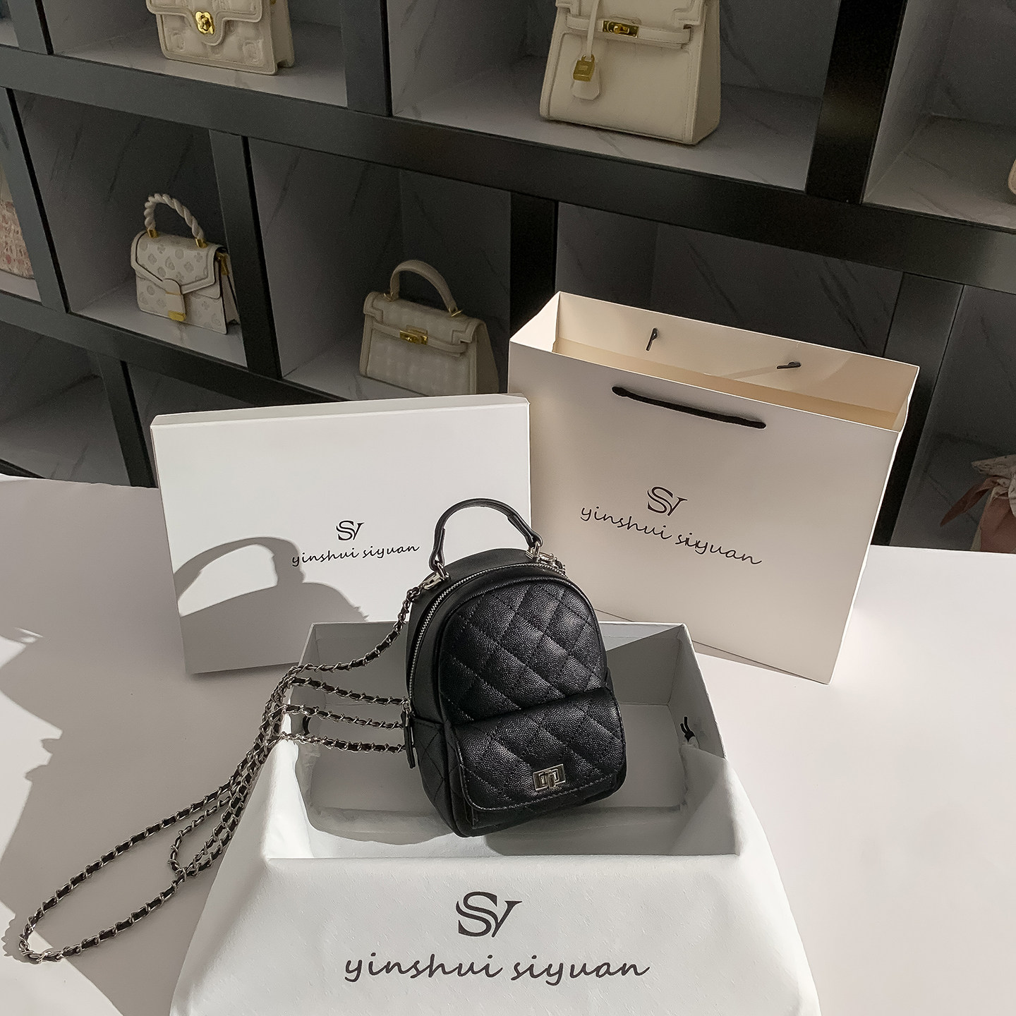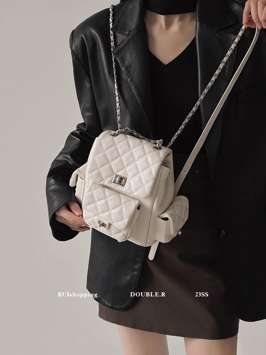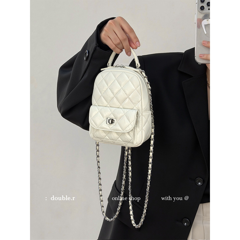 白色小香风迷你链条双肩包包女2026新款高级感小众设计斜挎小背包