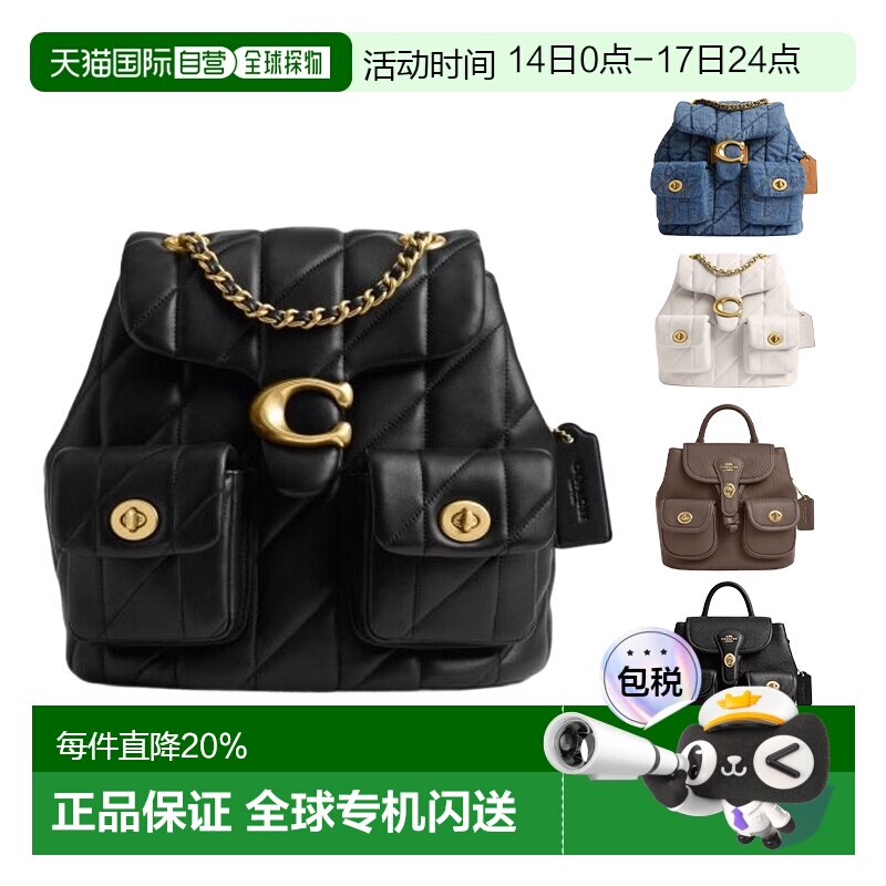 COACH 奥莱款女士外置旋锁袋绗缝羊皮革链条双肩包蔻驰背包女包