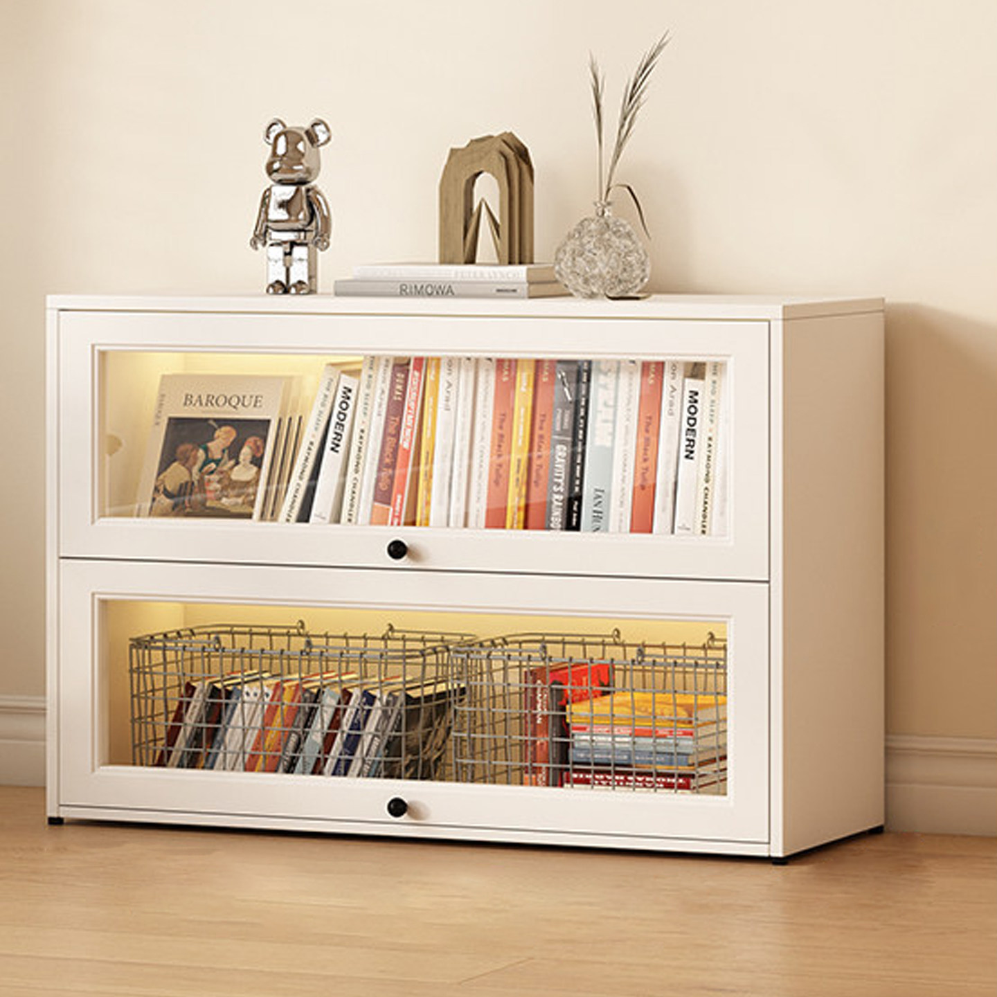 书架上翻门书柜多层钢制置物柜家用落地收纳储物柜儿童图书收纳柜