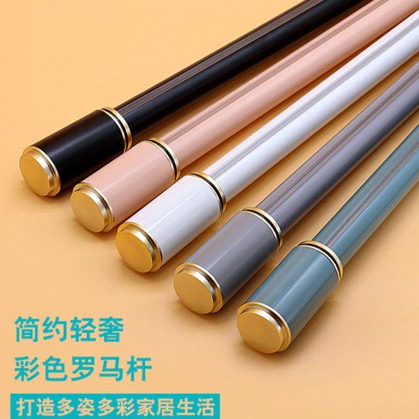 彩色罗马杆 窗帘杆 单杆双杆顶装侧装轨道北欧简约铝合金加厚静音