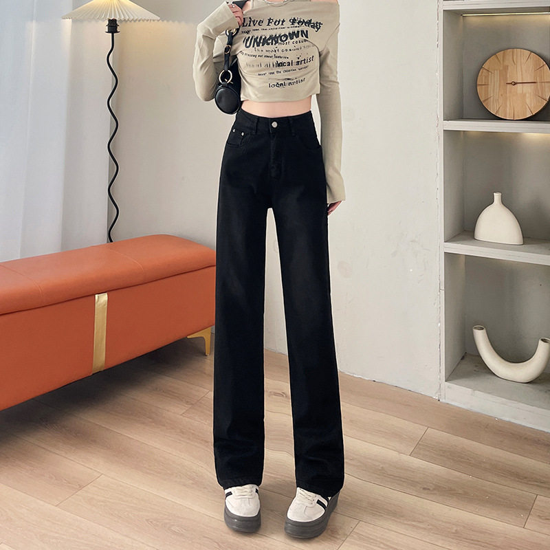 - 高腰直筒牛仔裤女韩版