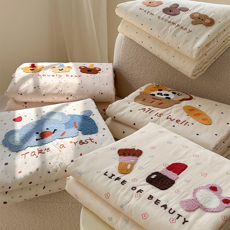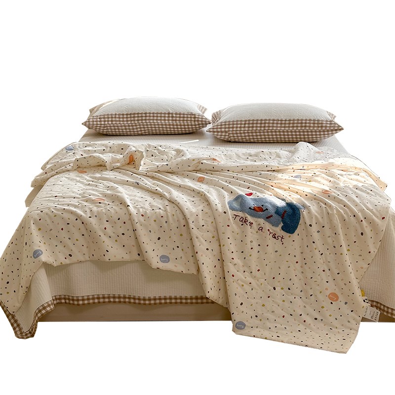 可爱毛巾绣夏季可水洗全棉双层纱空调被 纯棉亲肤纱布薄被子夏被