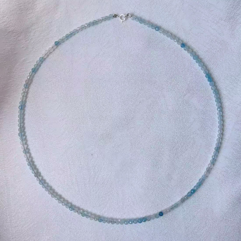天然刻面海蓝宝极细项链女款尖晶石锁骨链轻奢简约时尚叠戴银挂链