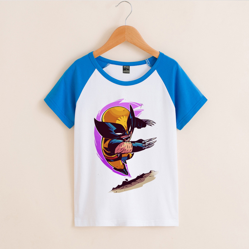 卡通可爱动漫英雄Q版潮X战警金刚狼diy半袖短袖童装中大童夏装T恤