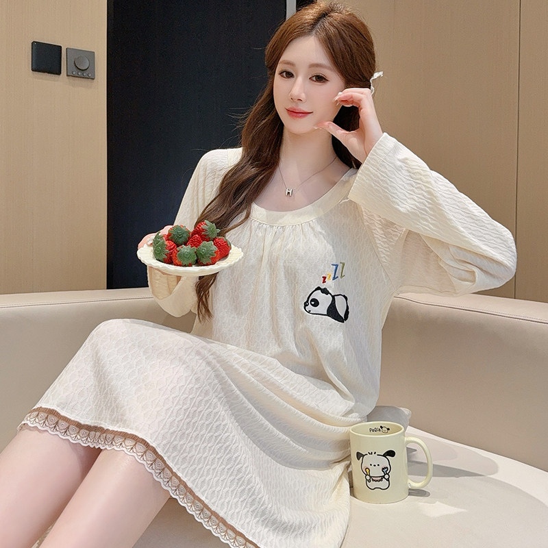 带胸垫睡裙女款春秋季纯棉长袖加肥加大码胖mm200斤可外穿连衣裙