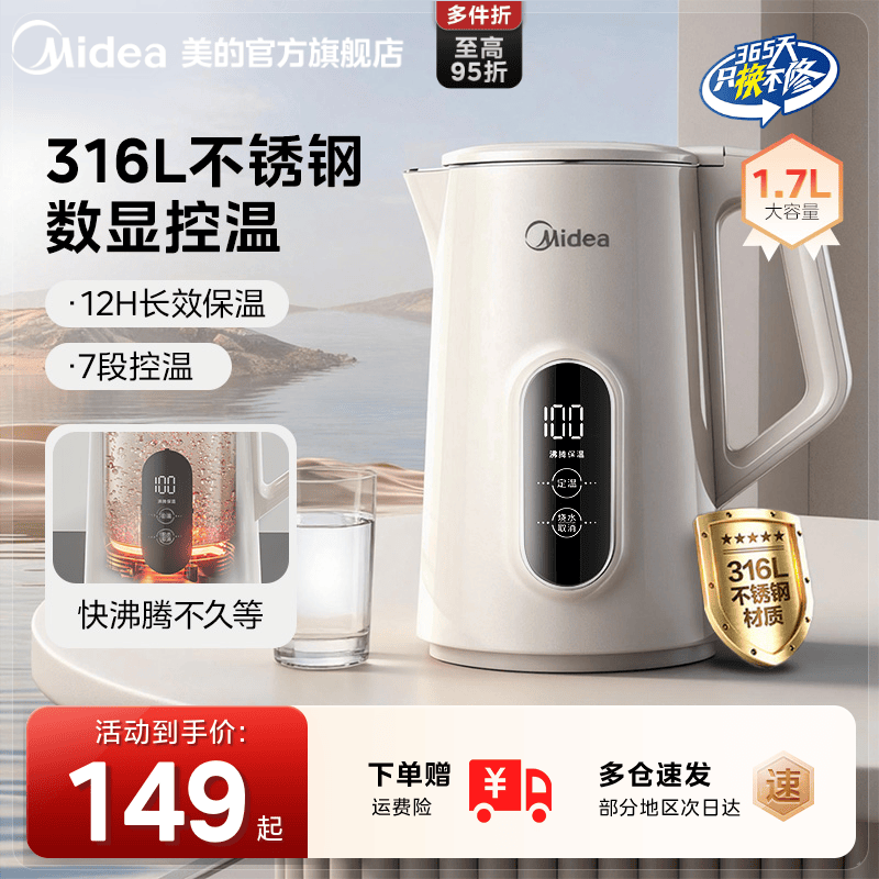 美的恒温电热水壶316L家用智能全自动不锈钢烧水壶保温一体热水壶