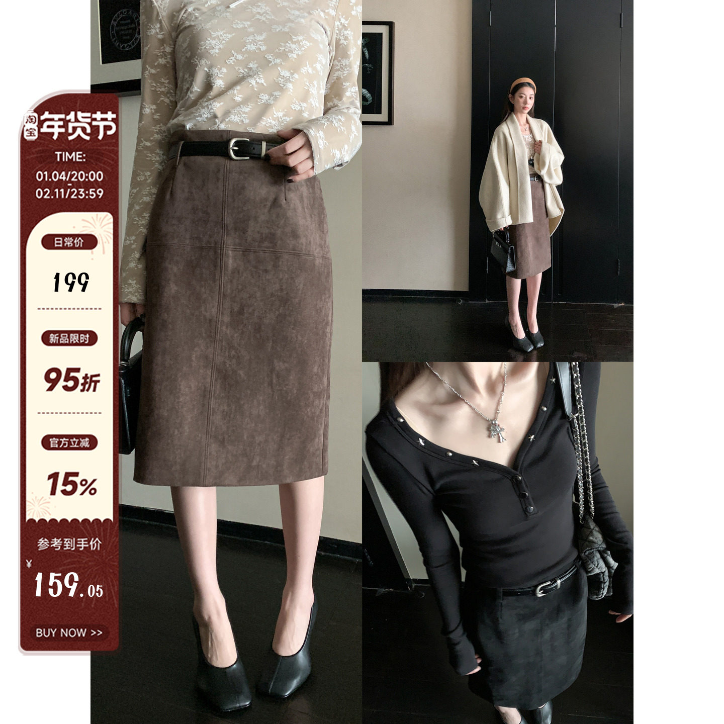 - 金丝绒连衣裙 中长款
