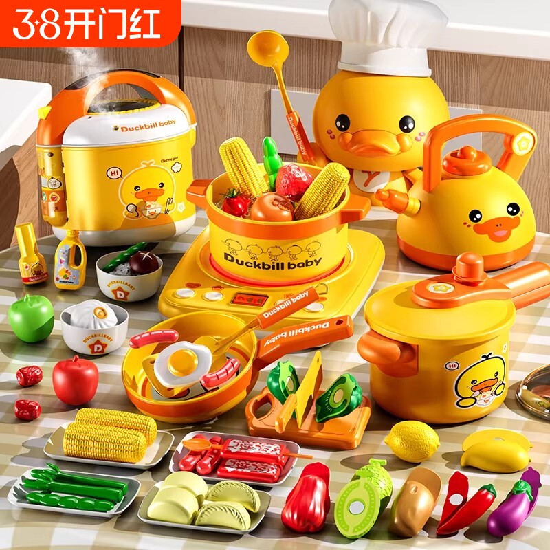 儿童厨房做饭玩具女孩仿真厨具套装宝宝煮饭小黄鸭爆款过家家全套
